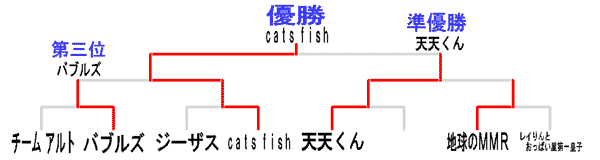 コメント・ 実は一回戦が一番きつかった。運良く優勝はしましたが、ここのセイヴァーのレベルの高さには驚かされました。今度8月17日(日)に我々の地元つくば市の”アムス・ラボ”というゲーセンで3ON3大会が開かれます。我々を倒したければそこまで来い。そこではパペットショーを200点以上出す人もいるぞ。待ってるよん。