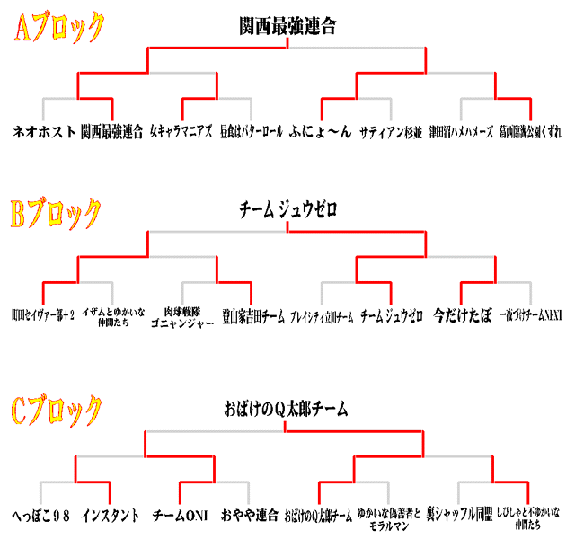 大会はAブロック、Bブロック、Cブロックの3ブロックでの予選トーナメントを行い、